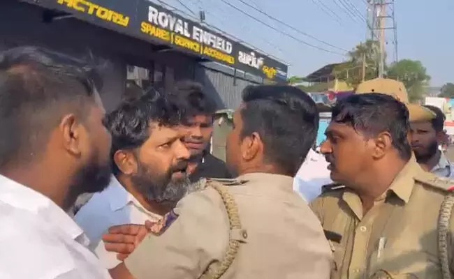 ಕಾಂಗ್ರೆಸ್ ಅಭ್ಯರ್ಥಿ ಪದ್ಮರಾಜ್ ಆರ್. ಮತದಾನ ಮಾಡಿ ಹೊರಬಂದಾಗ ಮಾಧ್ಯಮದವರು ಗೇಟಿನ ಹೊರಭಾಗದಲ್ಲಿ ಅವರ ಹೇಳಿಕೆ ತೆಗೆದುಕೊಂಡಿದ್ದರು. ಆಗ ಎಷ್ಟು ಹೊತ್ತು ಪ್ರತಿಕ್ರಿಯೆ ಪಡೆಯುವುದು ಎಂದು ಕಾರ್ಯಕರ್ತನೋರ್ವ ಹೇಳಿದ್ದು, ಈ ವೇಳೆ ಅಲ್ಲಿಯೇ ಇದ್ದ ಪೊಲೀಸ್ ಅಧಿಕಾರಿ ಆತನನ್ನು ತಳ್ಳಿಕೊಂಡು ಒಂದಷ್ಟು ದೂರ ಹೋಗಿದ್ದಾರೆ. ಈ ವೇಳೆ ಆತನೊಂದಿಗೆ ಇದ್ದವರು ಸಮಾಧಾನ ಮಾಡಲು ಯತ್ನಿಸಿದರೂ, ಆತ ಪೊಲೀಸರೊಂದಿಗೆ ಅನುಚಿತವಾಗಿ ವರ್ತಿಸಿ, ವಾಗ್ವಾದ ಬೆಳೆಸಿದ್ದಾನೆ. ಆಗ ಪೊಲೀಸ್ ಅಧಿಕಾರಿ ಎಚ್ಚರಿಕೆ ನೀಡಿ ಕಳಿಸಿದ್ದಾರೆ ಎಂದು ತಿಳಿದು ಬಂದಿದೆ.