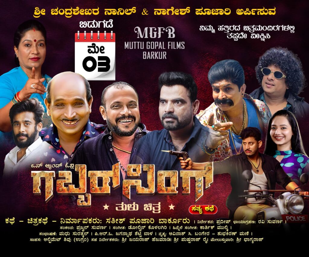 ಹೆಸರಿನಿಂದಲೇ ಕುತೂಹಲ ಮೂಡಿಸಿರುವ ತುಳು ಸಿನಿಮಾ ‘ಗಬ್ಬರ್ ಸಿಂಗ್’ ಚಿತ್ರೀಕರಣ ಪೂರ್ಣಗೊಂಡಿದ್ದು, ಮೇ.3 ರಂದು ಚಿತ್ರ ಬಿಡುಗಡೆಯಾಗಲಿದೆ.