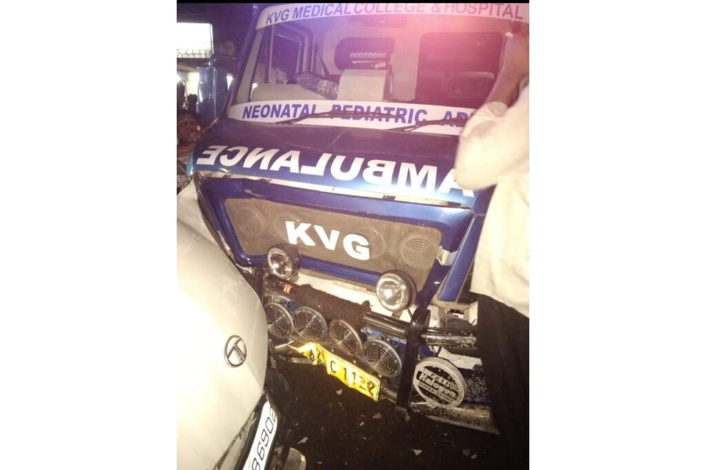ಪುತ್ತೂರು: ಮಂಗಳೂರಿಗೆ ರೋಗಿಯನ್ನು ಕರೆದೊಯ್ಯುತ್ತಿದ್ದ ಆ್ಯಂಬುಲೆನ್ಸಿಗೆ ನ್ಯಾನೋ ಕಾರು ಡಿಕ್ಕಿ ಹೊಡೆದಿದ್ದು, ನ್ಯಾನೋ ಕಾರಿಗೆ ಮಂಗಳೂರಿನಿಂದ ಬರುತ್ತಿದ್ದ ಮತ್ತೊಂದು ಕಾರು ಢಿಕ್ಕಿಯಾದ ಘಟನೆ ಕಬಕದಲ್ಲಿ ನಡೆದಿದೆ.