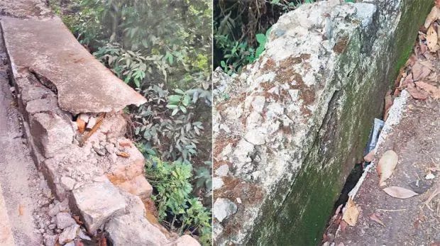 ಆಗುಂಬೆ ಘಾಟಿ ತಡೆಗೋಡೆ ಬಳಿ ಬಿರುಕು : ಘನವಾಹನಗಳ ಸಂಚಾರದಿಂದ ಘಾಟಿ ಬಂದ್‌ ಆಗುವ ಭೀತಿ