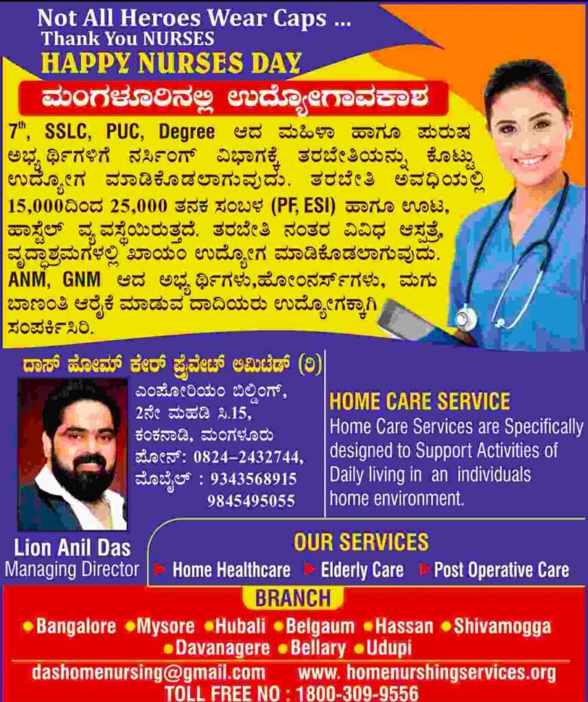 ‘ದಾಸ್ ಪ್ರಮೋಷನ್ಸ್’ ಹೋಮ್ ನರ್ಸಿಂಗ್ ಸೇವಾ ಸಂಸ್ಥೆ, ಕಂಕನಾಡಿ ಮಂಗಳೂರು., www.homenursingservices.org ಫೋ: 9343568915