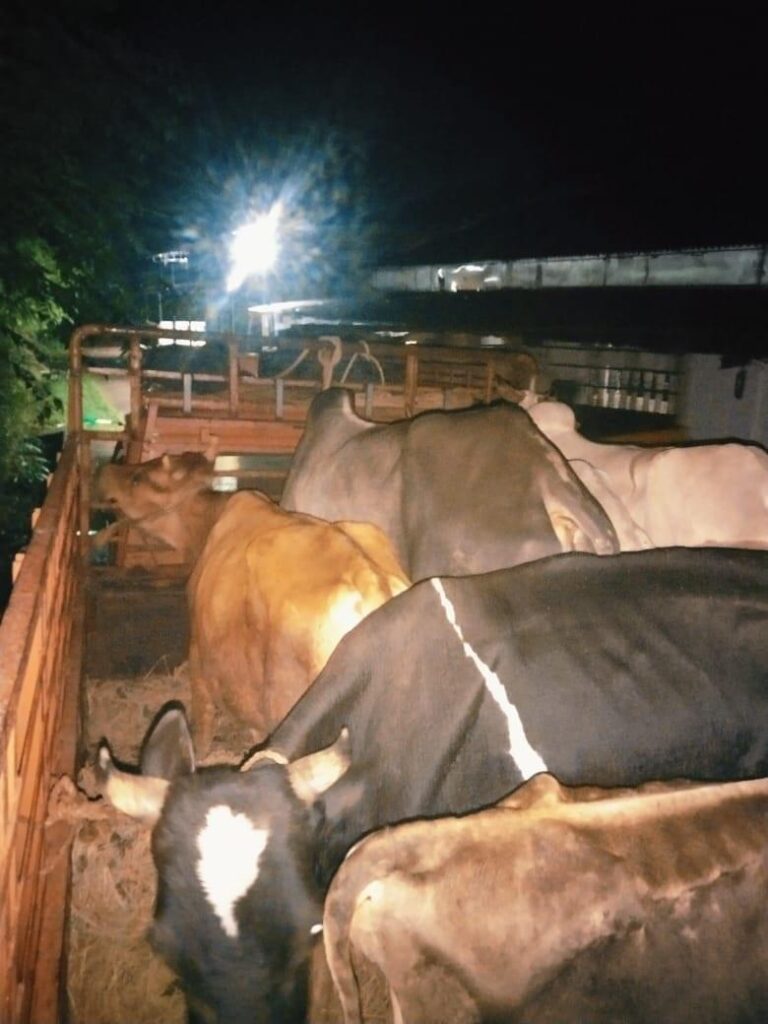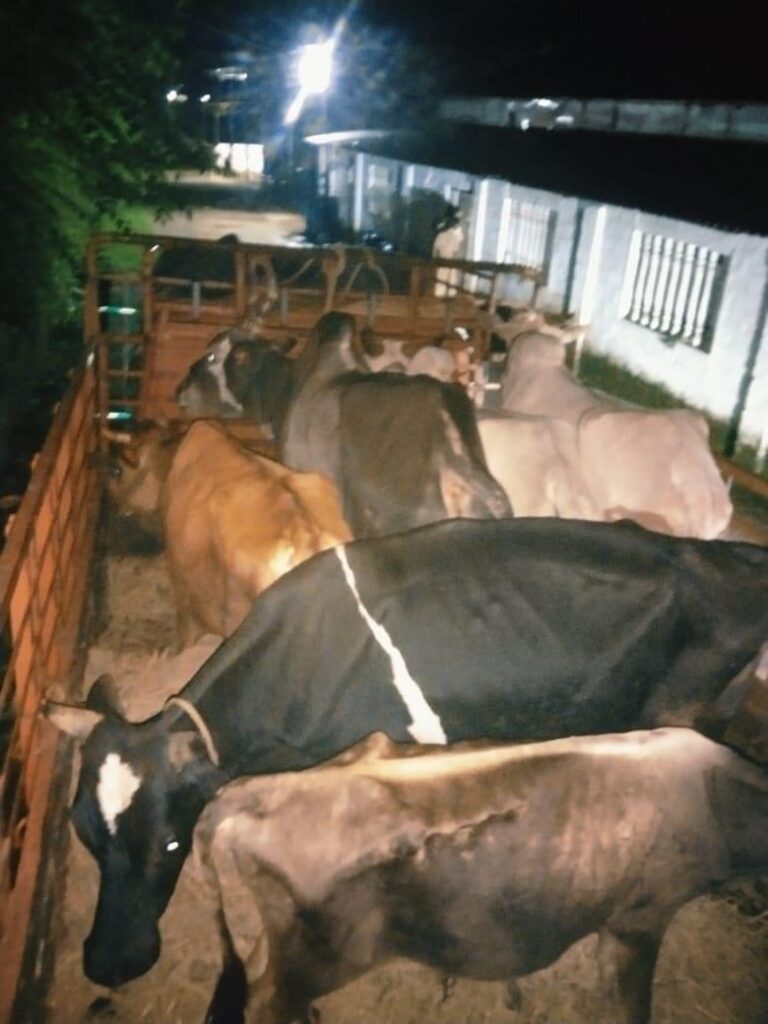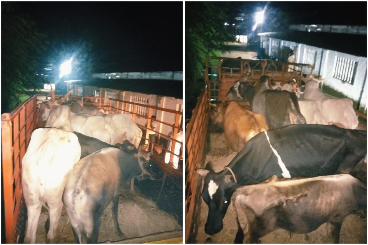 ಬಜರಂಗದಳ ಕಾರ್ಯಕರ್ತರು ಪೊಲೀಸರ ನೆರವಿನೊಂದಿಗೆ ಜಾನುವಾರುಗಳನ್ನು ರಕ್ಷಿಸಿದರು.