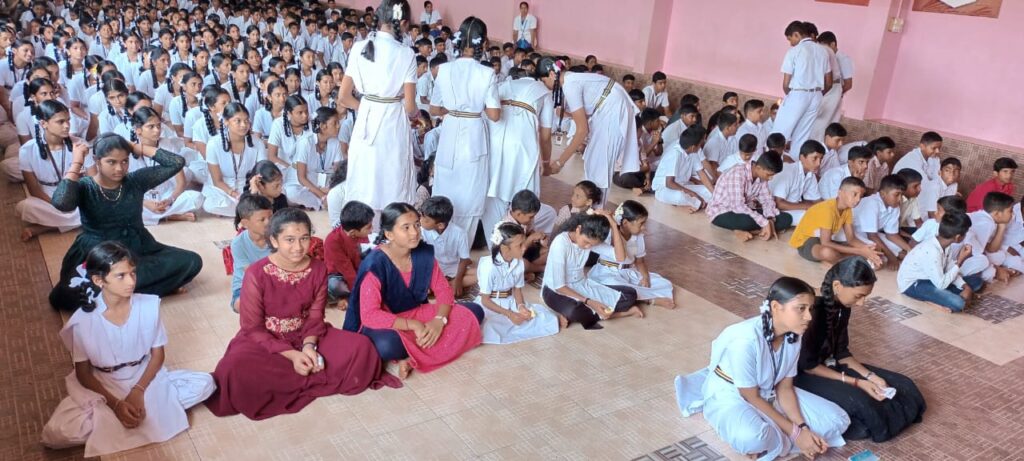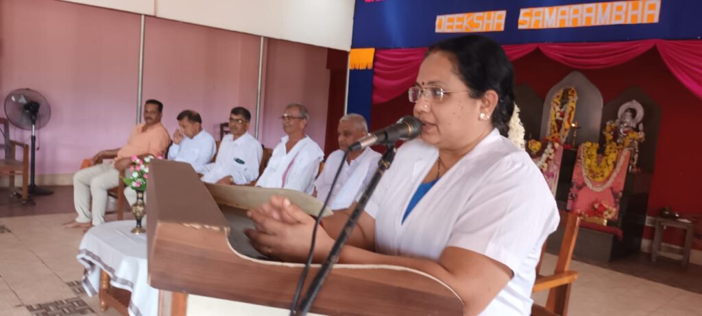 ಶಾಲಾ ಮುಖ್ಯೋಪಾಧ್ಯಾಯರು ಪ್ರಾಸ್ತಾವಿಕ ಮಾತುಗಳೊಂದಿಗೆ ಹೊಸದಾಗಿ ಸೇರಿದ ವಿದ್ಯಾರ್ಥಿಗಳಿಗೆ ದೀಕ್ಷೆ ನೀಡಿದರು. ನಂತರ ಆರತಿ ಬೆಳಗಿ ತಿಲಕವಿಡುವ ಮೂಲಕ ಹೊಸ ವಿದ್ಯಾರ್ಥಿಗಳನ್ನು ಸ್ವಾಗತ ಮಾಡಲಾಯಿತು.