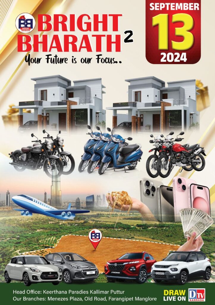 ಪುತ್ತೂರು : ಮೊದಲ ಸೀಸನ್’ನ ಯಶಸ್ವಿ ಪಯಣದೊಂದಿಗೆ, ಸಾವಿರಾರು ಸಂತೃಪ್ತ ಗ್ರಾಹಕರನ್ನು ಪಡೆದ “ಬ್ರೈಟ್ ಭಾರತ್” ಸಂಸ್ಥೆ ಇದೀಗ ಈ ಭಾಗದಲ್ಲಿ ಪ್ರಪ್ರಥಮ ಬಾರಿಗೆ, ಆರು ಸುಸಜ್ಜಿತ ಮನೆಯೊಂದಿಗೆ ನಾಲ್ಕು ಐಶಾರಾಮಿ ಕಾರು, ನಾಲ್ಕು ಸುಸಜ್ಜಿತ ಜಾಗ, ಚಿನ್ನ, ಡೈಮಂಡ್’ಗಳನ್ನು ಬಹುಮಾನವಾಗಿ ನೀಡುವ ಮತ್ತೊಂದು ಹೊಸ ಯೋಜನೆಯನ್ನು ಬಿಡುಗಡೆಗೊಳಿಸಿದೆ.