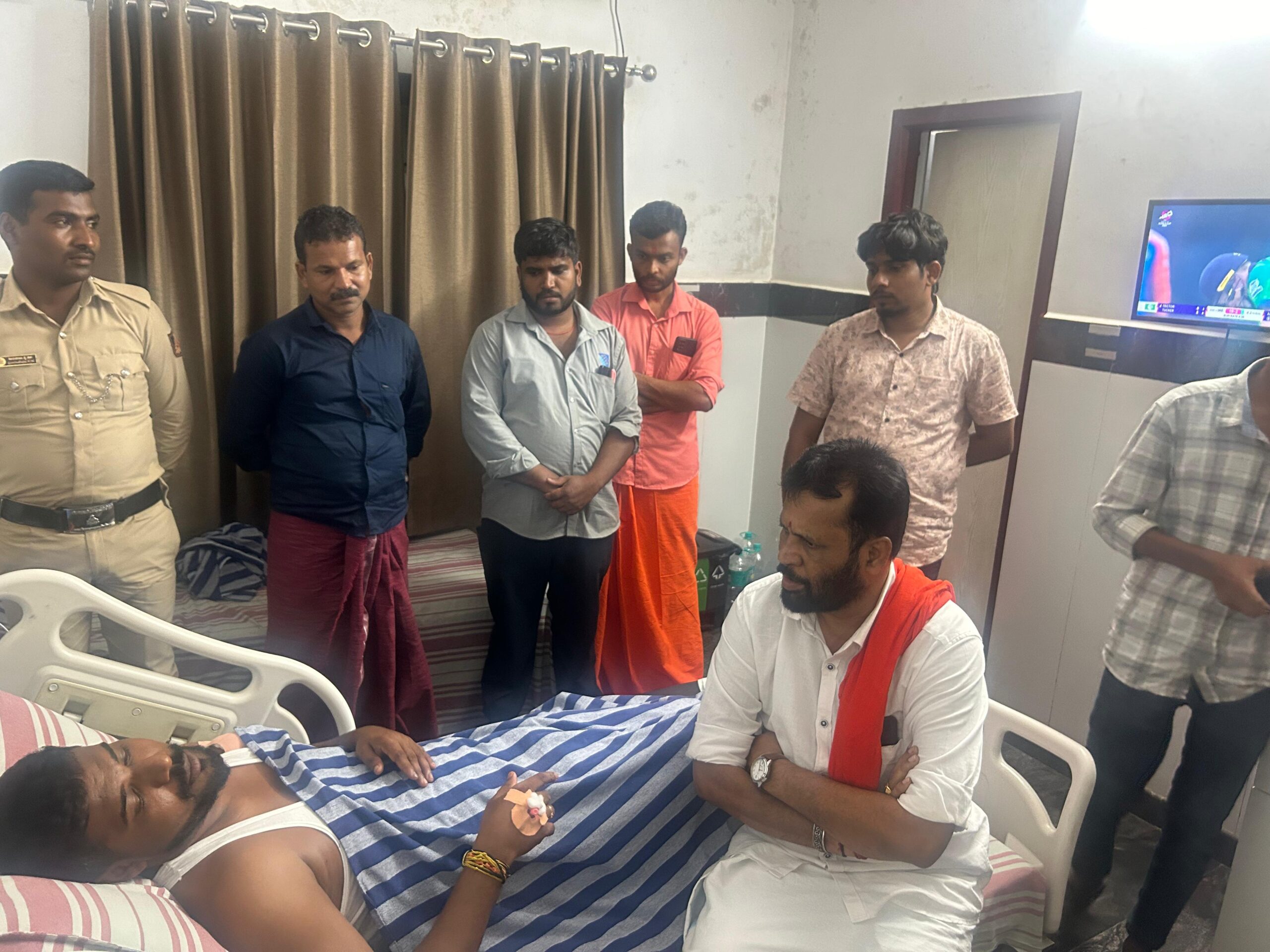 ಬೆಳ್ತಂಗಡಿ : ಕಳೆಂಜದ ಗ್ರಾಮದ ಬಿಜೆಪಿ ಮುಖಂಡ ರಾಜೇಶ್ ಎಂ.ಕೆ. ಮೇಲೆ ನಿನ್ನೆ ರಾತ್ರಿ ಮಾರಾಕಾಸ್ತ್ರಗಳಿಂದ ದಾಳಿ ನಡೆದಿದ್ದು, ಘಟನೆಯಿಂದಾಗಿ ಗಾಯಗೊಂಡ ರಾಜೇಶ್ ಉಜಿರೆಯ ಖಾಸಗಿ ಆಸ್ಪತ್ರೆಯಲ್ಲಿ ಚಿಕಿತ್ಸೆ ಪಡೆಯುತ್ತಿದ್ದು, ಅರುಣ್ ಕುಮಾರ್ ಪುತ್ತಿಲ ಆಸ್ಪತ್ರೆಗೆ ಭೇಟಿ ನೀಡಿ, ಆರೋಗ್ಯ ವಿಚಾರಿಸಿದರು.
