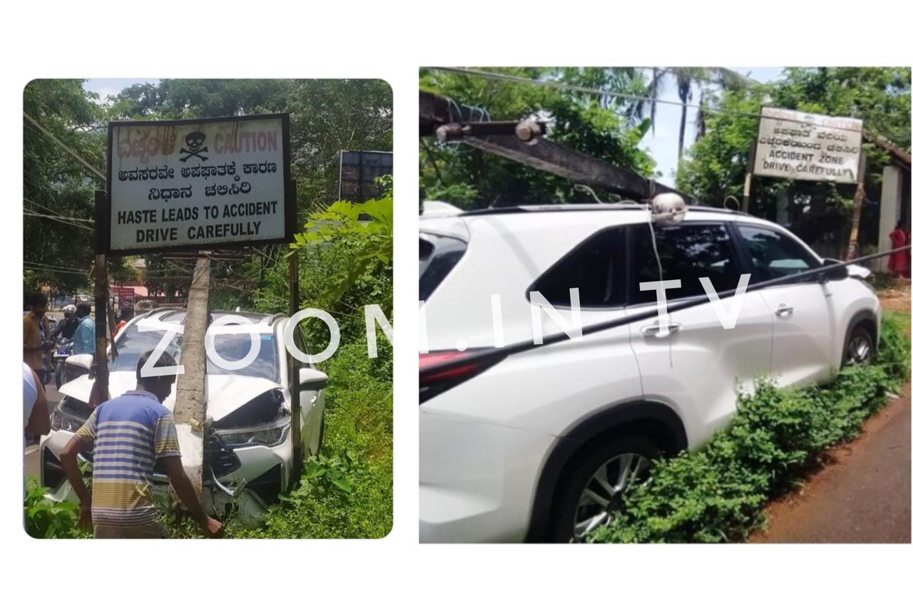 ಬೆಂಗಳೂರಿನಿಂದ ಧರ್ಮಸ್ಥಳಕ್ಕೆ ತೆರಳಿ ಕುಕ್ಕೆ ಸುಬ್ರಹ್ಮಣ್ಯಕ್ಕೆ ಬರುತ್ತಿದ್ದ ಯಾತ್ರಿಕರ ಕಾರು ಕುಲ್ಕುಂದ ಸಮೀಪ ಎದುರಿನಿಂದ ಬಂದ ವಾಹನಕ್ಕೆ ಡಿಕ್ಕಿಯಾಗುವುದನ್ನು ತಪ್ಪಿಸುವ ಭರದಲ್ಲಿ ಚಾಲಕನ ನಿಯಂತ್ರಣ ತಪ್ಪಿ ವಿದ್ಯುತ್ ಕಂಬಕ್ಕೆ ಡಿಕ್ಕಿಯಾಗಿದೆ.