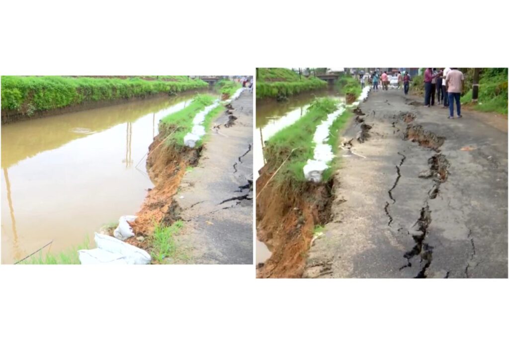 ರಾಜಕಾಲುವೆ ತಡೆಗೋಡೆ ಕುಸಿದ ಪರಿಣಾಮ ಡಾಂಬರು ರಸ್ತೆಯಲ್ಲಿ ಭಾರೀ ಬಿರುಕು ಸೃಷ್ಟಿಯಾಗಿದೆ. ರಸ್ತೆ ಬಿರುಕು ಬಿಟ್ಟು ಕ್ಷಣ ಕ್ಷಣಕ್ಕೂ ರಸ್ತೆಯಲ್ಲಿ ಮಣ್ಣು ಕುಸಿಯುತ್ತಿರುವ ಕಾರಣ ಸಂಚಾರ ಬಂದ್ ಮಾಡಲಾಗಿದೆ.