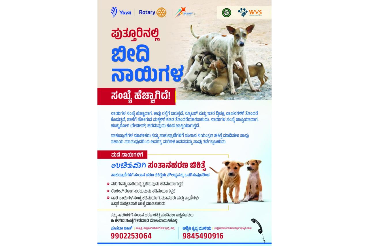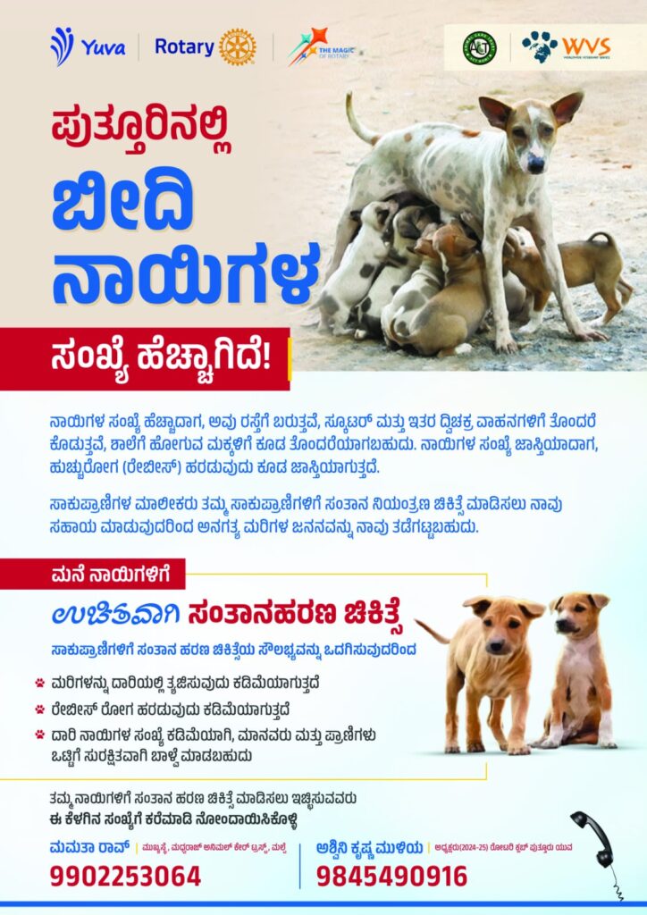 ಸಂತಾನ ಹರಣ ಚಿಕಿತ್ಸೆ ಮಾಡಲಿಚ್ಚಿಸುವವರು ರೋಟರಿ ಕ್ಲಬ್ ಪುತ್ತೂರು ಯುವ ಅಧ್ಯಕ್ಷೆ ಅಶ್ವಿನಿ ಕೃಷ್ಣ ಮುಳಿಯ, ಮದ್ವರಾಜ್ ಅನಿಮಲ್ ಕೇರ್ ಟ್ರಸ್ಟ್ ಮುಖ್ಯಸ್ಥೆ ಮಮತಾ ರಾವ್ ಹಾಗೂ 9902253064 ಕರೆ ಮಾಡಿ ನೋಂದಾಯಿಸಿಕೊಳ್ಳಬಹುದಾಗಿದೆ.