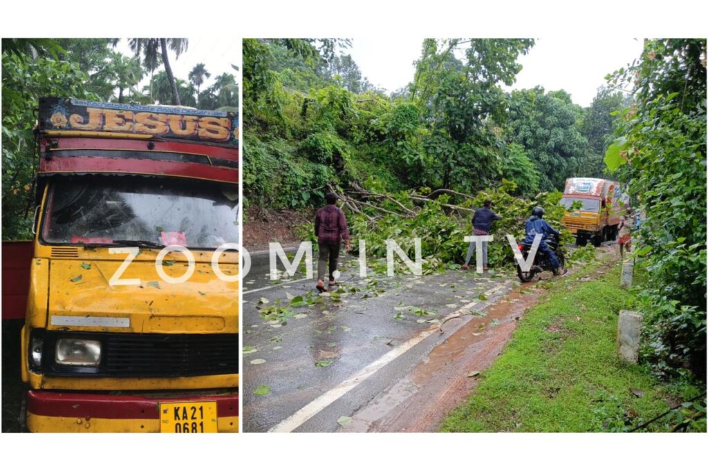 ಪುತ್ತೂರು : ರಾಜ್ಯಾದ್ಯಂತ ಭಾರೀ ಮಳೆ ಸುರಿಯುತ್ತಿದ್ದು, ಹಲವು ಕಡೆಗಳಲ್ಲಿ ಅನಾಹುತ ಸಂಭವಿಸುತ್ತಿದೆ. ಮಾಣಿ-ಮೈಸೂರು ರಾಜ್ಯ ಹೆದ್ದಾರಿಯ ಮಿತ್ತೂರು ಸಮೀಪ ಮರವೊಂದು ರಸ್ತೆಗೆ ಅಡ್ಡಲಾಗಿ ಬಿದ್ದಿದ್ದು, ವಾಹನ ಸಂಚಾರ ಅಸ್ತವ್ಯಸ್ಥವಾಗಿದೆ.