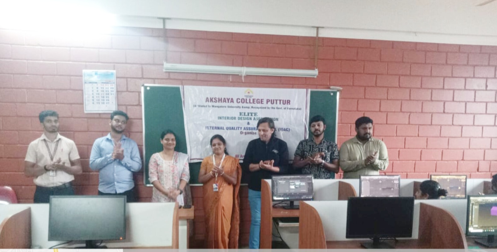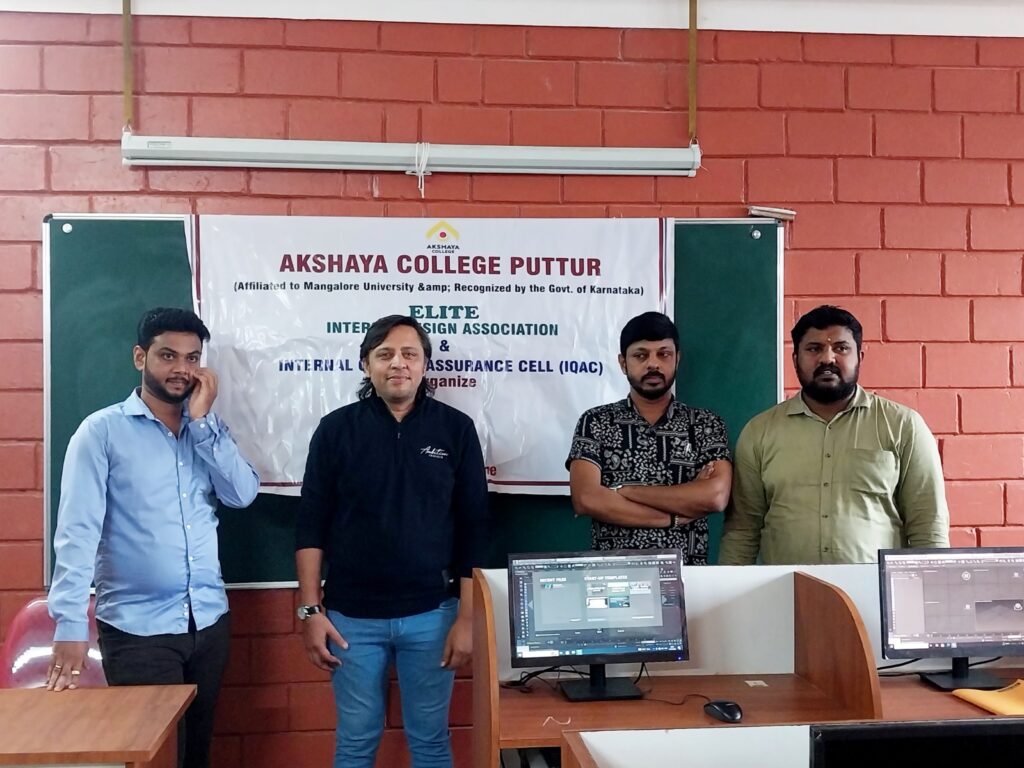 ಪುತ್ತೂರಿನ ಸಂಪ್ಯದಲ್ಲಿ ಕಾರ್ಯಾಚರಿಸುತ್ತಿರುವ ಅಕ್ಷಯ ಕಾಲೇಜಿನಲ್ಲಿ ಇಂಟೀರಿಯರ್ ಡಿಸೈನ್ ವಿಭಾಗದ ವಿದ್ಯಾರ್ಥಿಗಳಿಗೆ “ಎಲೈಟ್ ” ಇಂಟೀರಿಯರ್ ಡಿಸೈನ್ ಅಸೋಸಿಯೇಷನಿಂದ 1 ತಿಂಗಳ “Auto Desk -3DS Max & 3D Rendering” ಕೋರ್ಸ್ ನು ಭಾರತ್ ಅಕಾಡೆಮಿ ಆಫ್ ಲಿಬರಲ್ ಎಜುಕೇಶನ್ (BASE) ಮಂಗಳೂರು ಇವರ ಸಹಯೋಗದೊಂದಿಗೆ ಆರಂಭಿಸಲಾಯಿತು.