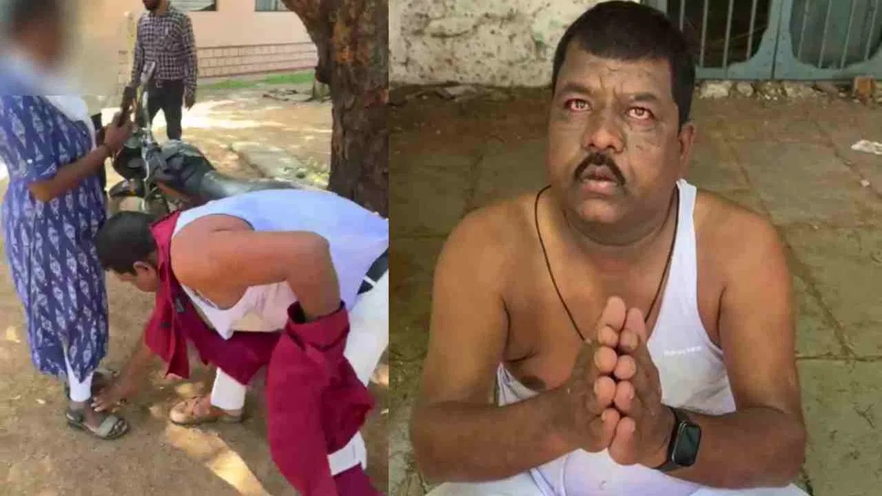 ಜಿಲ್ಲೆಯ ಹೊರವಲಯದಲ್ಲಿರುವ ಆದರ್ಶ ಸರ್ಕಾರಿ ಶಾಲೆಯಲ್ಲಿ ಸಹ ಶಿಕ್ಷಕನಾಗಿ ಕಾರ್ಯನಿರ್ವಹಿಸುತ್ತಿರುವ ಮೆಹಬೂಬ್ ಅಲಿ ಎಂಬುವವರಿಗೆ ಹಿಗ್ಗಾಮುಗ್ಗ ಥಳಿಸಿದ್ದು, ಶಿಕ್ಷಕಿಯ ಕಾಲಿಗೆ ಬೀಳಿಸಿ ಕ್ಷಮೆ ಕೇಳಿಸಲಾಗಿದೆ.
