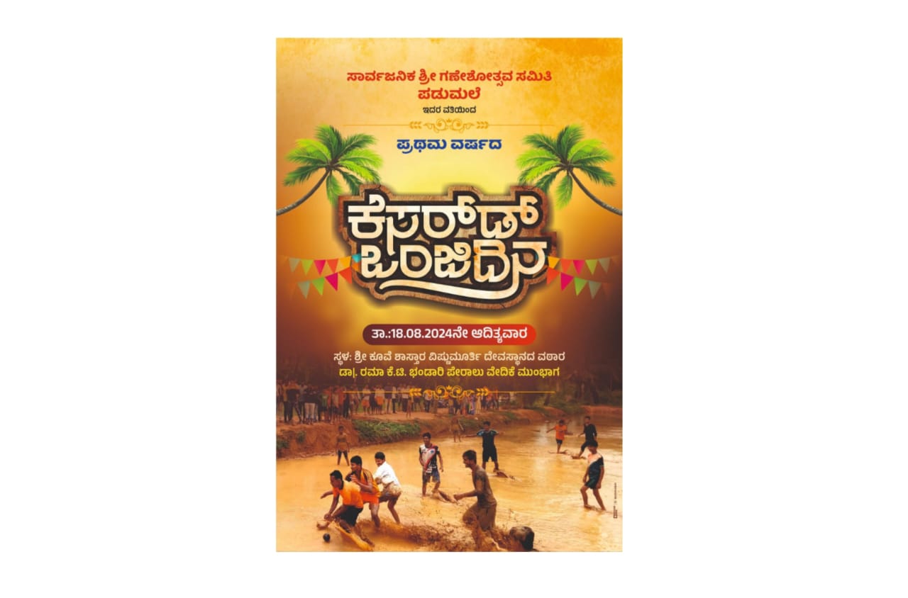 ಪುತ್ತೂರು : ಸಾರ್ವಜನಿಕ ಶ್ರೀ ಗಣೇಶೋತ್ಸವ ಸಮಿತಿ ಪಡುಮಲೆ ಇದರ ವತಿಯಿಂದ ಪ್ರಥಮ ವರ್ಷದ ಕೆಸರ್ಡ್ ಒಂಜಿದಿನ ಆ.18 ರಂದು ನಡೆಯಲಿದೆ.