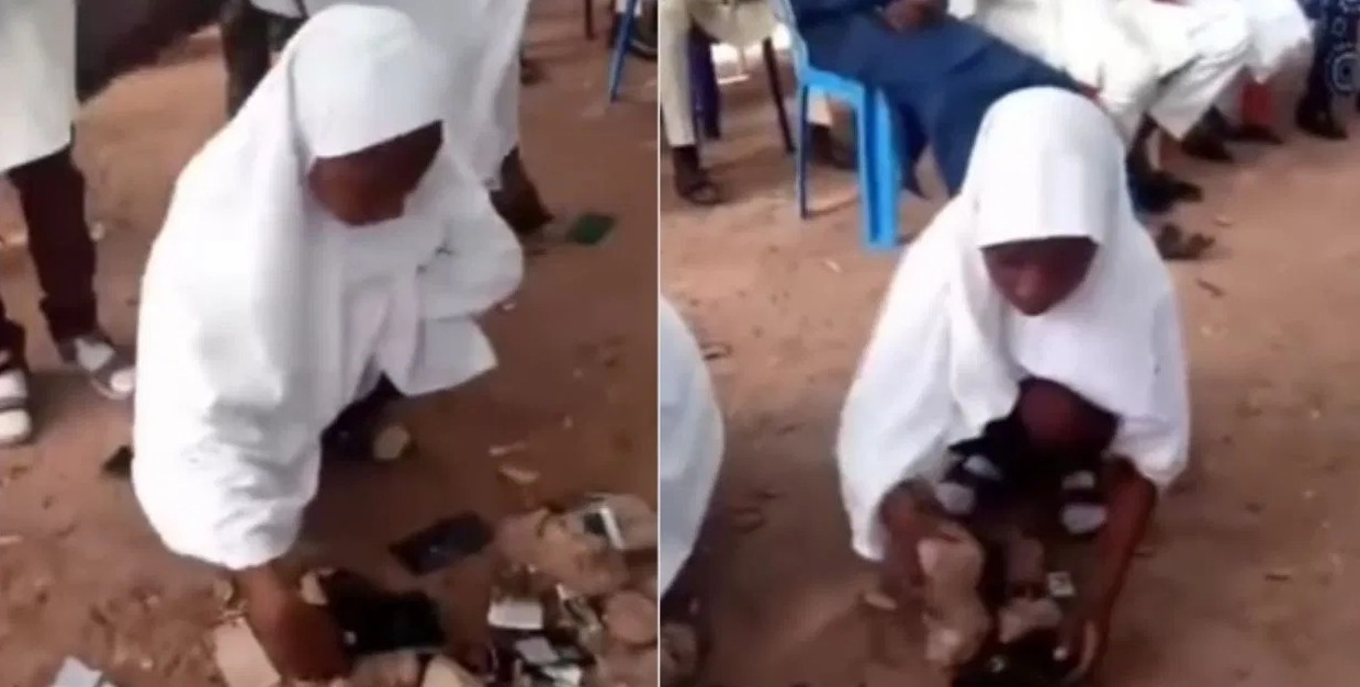 ವರದಿಗಳ ಪ್ರಕಾರ ಈ ಘಟನೆ ನೈಜೀರಿಯಾದಲ್ಲಿ ನಡೆದಿದ್ದು, ವಿದ್ಯಾಭ್ಯಾಸದಲ್ಲಿ ಕಳಪೆ ಮಟ್ಟದ ಪ್ರದರ್ಶನ ನೀಡಿದ್ದಕ್ಕಾಗಿ ಶಾಲೆಯ ಪೋಷಕರ ಸಂಘ ಸ್ವತಃ ವಿದ್ಯಾರ್ಥಿಗಳಿಂದಲೇ ಅವರ ಮೊಬೈಲ್ ಗಳನ್ನು ಹೊಡೆದು ಹಾಕಿಸಿದೆ.