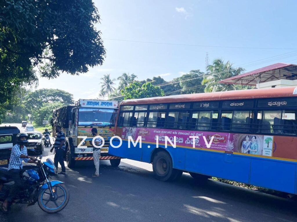 ಮಂಗಳೂರಿನಿಂದ ಪುತ್ತೂರು ಬರುತ್ತಿದ್ದ ಕೆ.ಎಸ್.ಆರ್.ಟಿ.ಸಿ ಬಸ್ ಗೆ ಹಿಂಬದಿಯಿಂದ ಬರುತ್ತಿದ್ದ ಲಾರಿ ಡಿಕ್ಕಿಯಾಗಿದ್ದು, ವಾಹನಕ್ಕೆ ಅಲ್ಪ ಪ್ರಮಾಣದ ಹಾನಿಯಾಗಿದೆನ್ನಲಾಗಿದೆ.