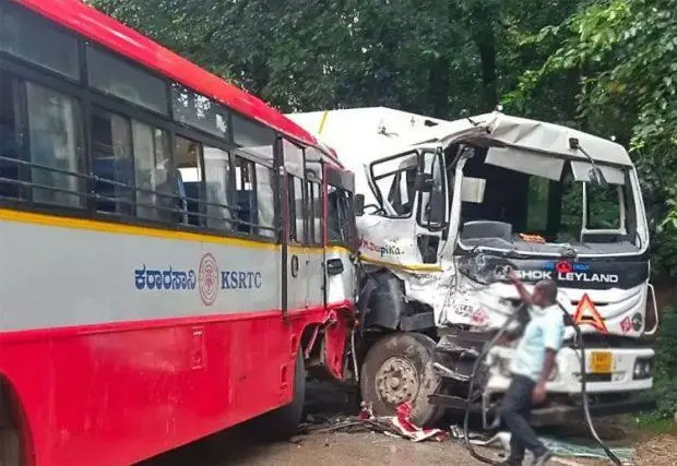 ಮಂಗಳೂರಿನಿಂದ ಬೆಂಗಳೂರು ಕಡೆಗೆ ಹೋಗುತ್ತಿದ್ದ ಟ್ಯಾಂಕರ್ ಹಾಗೂ ಸುಬ್ರಹ್ಮಣ್ಯದಿಂದ ಧರ್ಮಸ್ಥಳಕ್ಕೆ ಬರುತ್ತಿದ್ದ ಕೆಎಸ್ಆರ್ಟಿಸಿ ಬಸ್ ನಡುವೆ ಗುಂಡ್ಯ ಸಮೀಪ ಮುಖಾಮುಖಿ ಡಿಕ್ಕಿ ಸಂಭವಿಸಿದೆ.