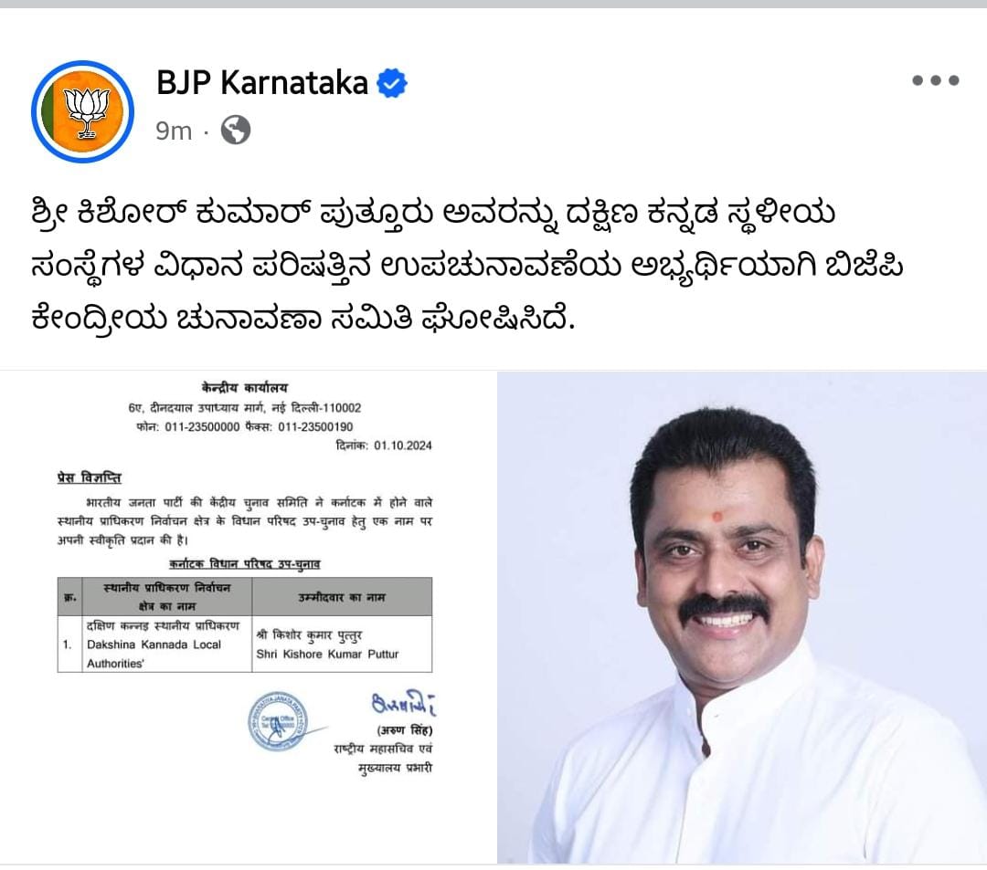 ಎಂ.ಎಲ್.ಸಿ ಎಲೆಕ್ಷನ್ : ಬಿಜೆಪಿಯಿಂದ ಕಿಶೋರ್ ಕುಮಾರ್ ಬೊಟ್ಯಾಡಿ ಕಣಕ್ಕೆ!