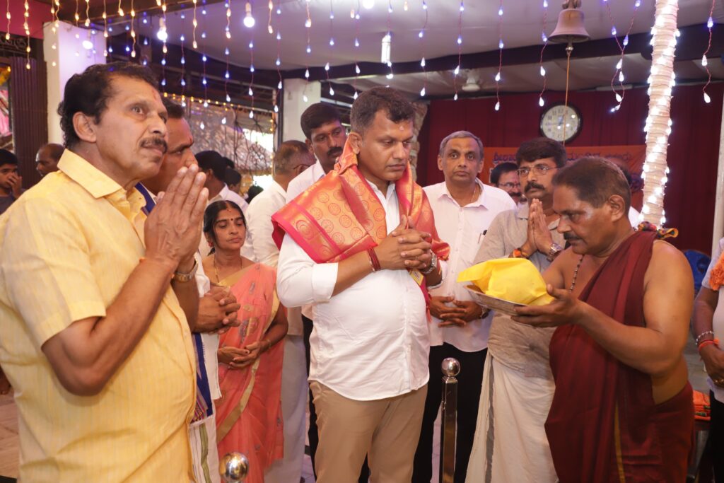ಮಂದಿರದ ಅಧ್ಯಕ್ಷ ಪಿ.ಜಿ.ಜಗನ್ನಿವಾಸ ರಾವ್ ಅಕ್ಷರ ಯಜ್ಞ ಪುಸ್ತಕ ನೀಡಿದರು.