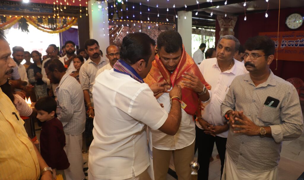 ಮಂದಿರದ ಗೌರವಾಧ್ಯಕ್ಷ ಕೆದಂಬಾಡಿಗುತ್ತು ಸೀತಾರಾಮ ರೈ ಶಾಲು ಹೊದಿಸಿ ಗೌರವಿಸಿದರು.