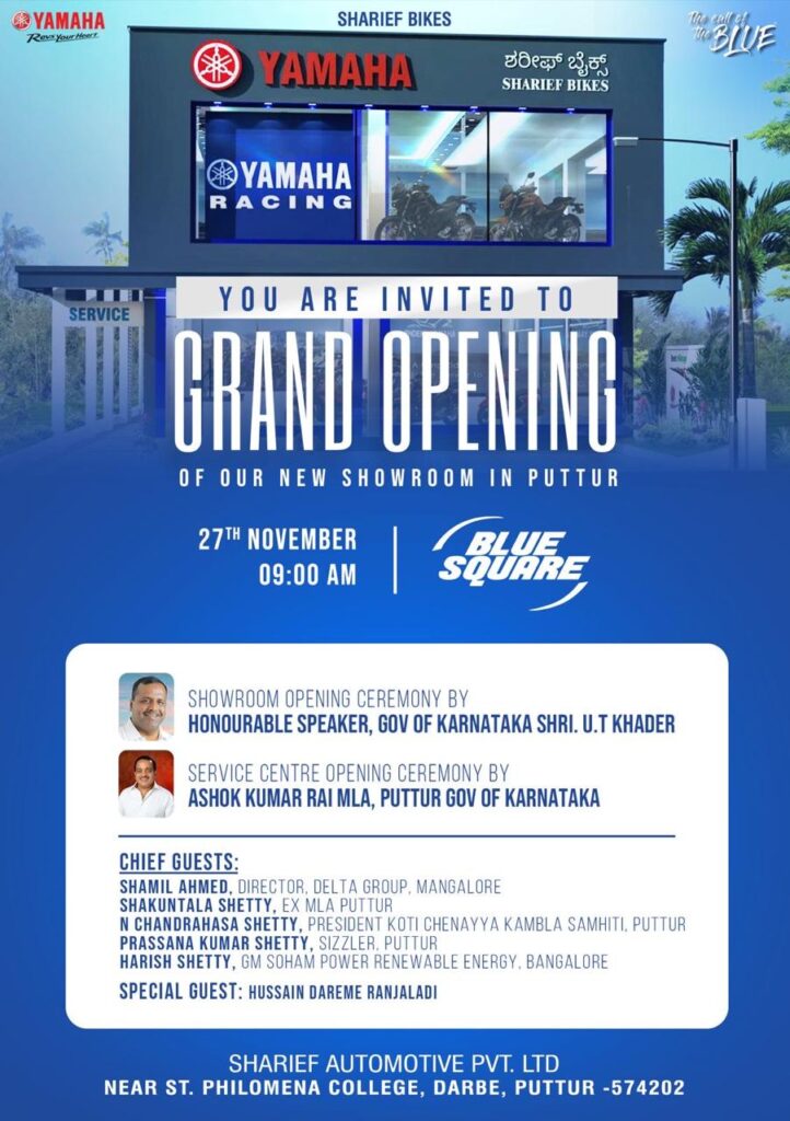 ಪುತ್ತೂರು: ಯಮಹಾ ಕಂಪನಿ ಯ ಅಧಿಕೃತ ಶೋರೂಮ್ ಶರೀಫ್ ಬೈಕ್ಸ್ ಪುತ್ತೂರಿನ ದರ್ಬೆಯ ಸಂತ ಫಿಲೋಮಿನ ಕಾಲೇಜಿನ ಬಳಿ ನ.27 ರಂದು ಶುಭಾರಂಭಗೊಳ್ಳಲಿದೆ.