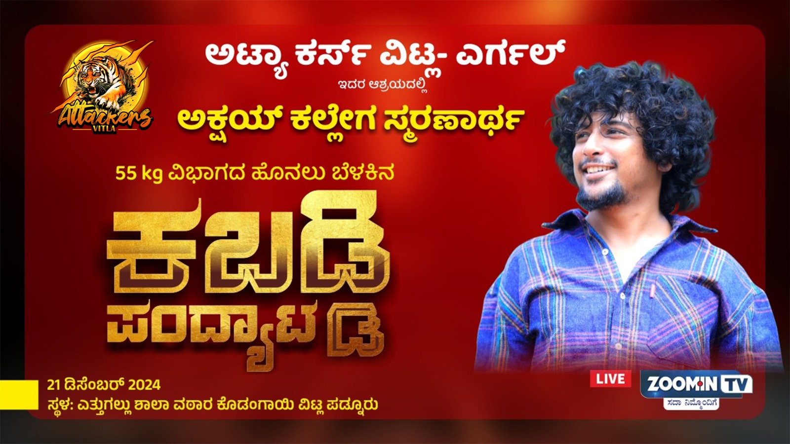 (ಡಿ.21)ಅಟ್ಯಾ ಕರ್ಸ್ ವಿಟ್ಲ – ಎರ್ಗಲ್ ಆಶ್ರಯದಲ್ಲಿ | ಅಕ್ಷಯ್ ಕಲ್ಲೇಗ ಸ್ಮರಣಾರ್ಥ 55 kg ವಿಭಾಗದ ಹೊನಲು ಬೆಳಕಿನ ಕಬಡ್ಡಿ ಪಂದ್ಯಾಟ..!!!