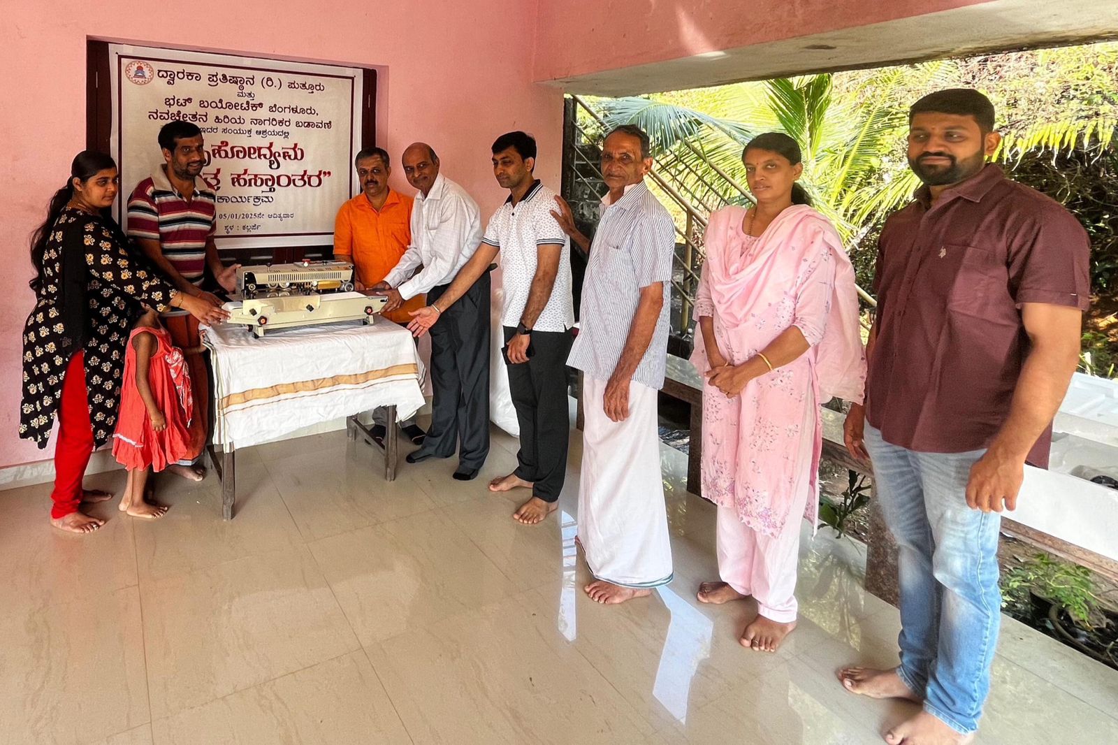 ದ್ವಾರಕಾ ಪ್ರತಿಷ್ಠಾನ (ರಿ) ಪುತ್ತೂರು ಹಾಗೂ ಭಟ್ ಬಯೋಟೆಕ್ ಬೆಂಗಳೂರು, ನವಚೇತನ ಹಿರಿಯ ನಾಗರಿಕರ ಬಡಾವಣೆ ಇವರ ಸಂಯುಕ್ತ ಆಶ್ರಯದಲ್ಲಿ ಪುತ್ತೂರಿನ ಕಲ್ಲರ್ಪೆ ನಿವಾಸಿ ಶ್ರೀಯುತ ರಾಮಪ್ರಸಾದ ಜಿ ಕೆ ಇವರಿಗೆ ದಿನಾಂಕ 5-1-2025 ನೇ ಭಾನುವಾರದಂದು ಸುಮಾರು1 ಲಕ್ಷ ಮೊತ್ತದ ದೀಪದ ಬತ್ತಿ ತಯಾರಿಸುವ ಸ್ವಯಂ ಚಾಲಿತ ಯಂತ್ರವನ್ನು ಉಚಿತವಾಗಿ ಹಸ್ತಾಂತರಿಸಲಾಯಿತು.