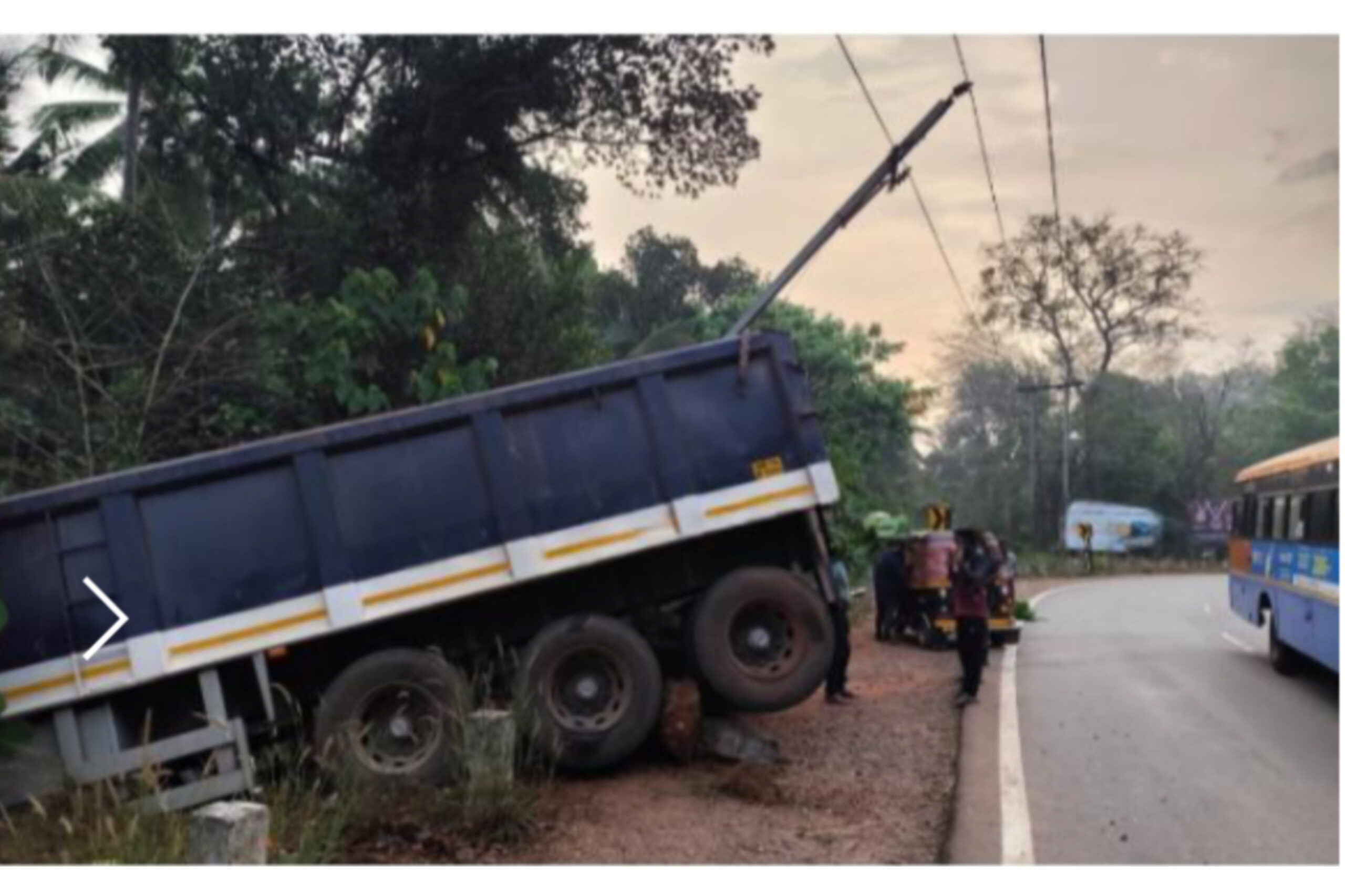 ಸುಳ್ಯ ಕಡೆಯಿಂದ ಹೋಗುತ್ತಿದ್ದ ಗೂಡ್ಸ್ ಲಾರಿ ಚಾಲಕನ ನಿಯಂತ್ರಣ ತಪ್ಪಿ ಬಲಬದಿಗೆ ಬಂದು ವಿದ್ಯುತ್ ಕಂಬಕ್ಕೆ ಢಿಕ್ಕಿಯಾಯಿತು.